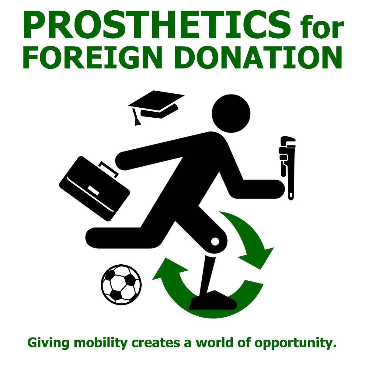 Prosthetics for Foreign Donation gives the gift of mobility, which is wrapped in independence and a renewed sense of dignity. We aim to give that gift, as it facilitates mobility and more importantly possibilities. Our why is never taking for granted our ability to walk or wheel by sharing that gift with others.