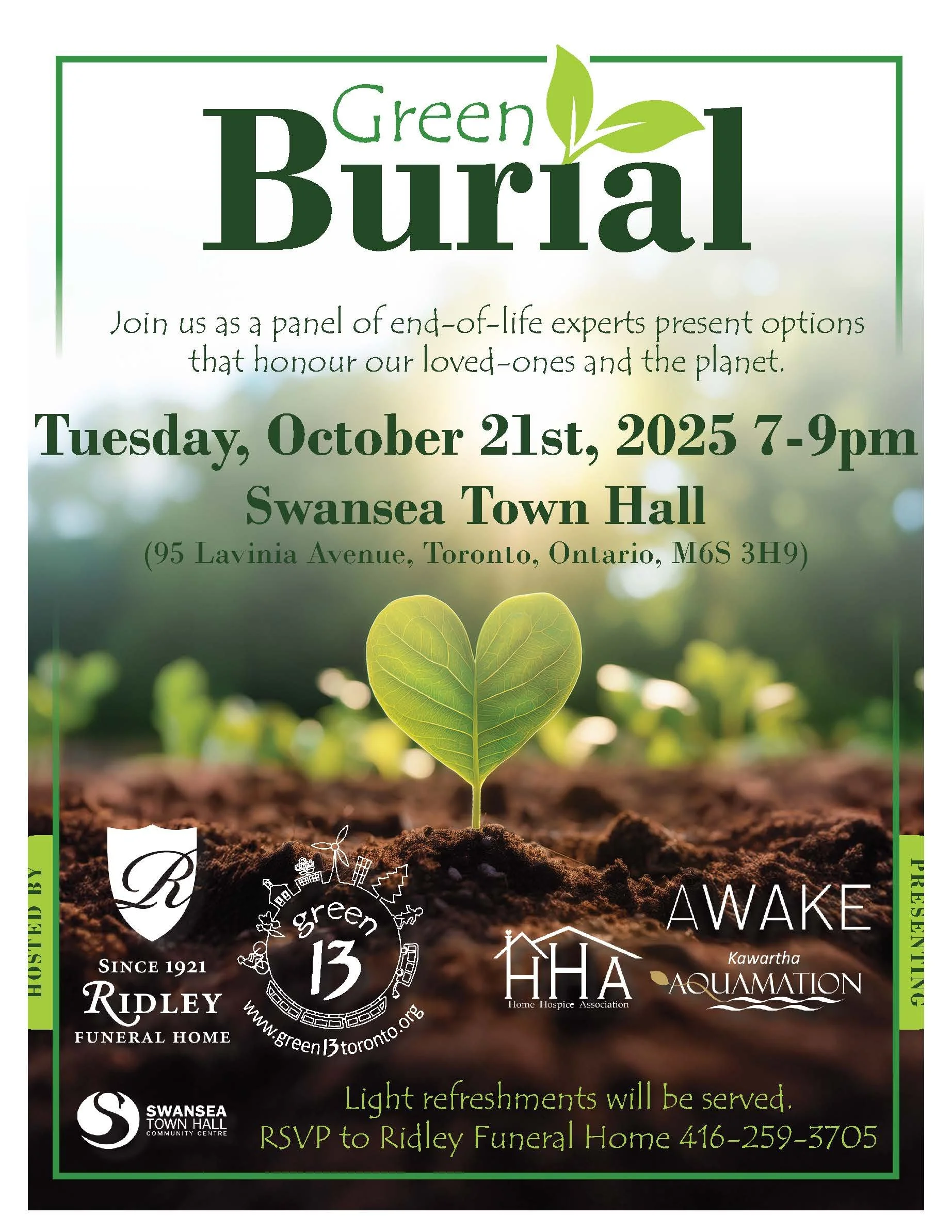 Join us as a panel of end-of-life experts present options that honour our loved-ones and the planet.